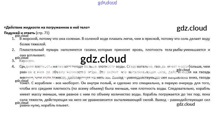 Ответ на задание 71 Учебник Физика за 5, 6 (пятый, шестой) класс Гуревич, Исаев, Понтак 2011 онлайн и без номера телефона.