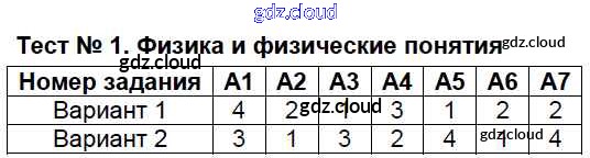 Ответ на задание Тест №1. Физика и физические понятия Контрольно-измерительные материалы (КИМ) Физика за 7 (седьмой) класс Бобошина 2014