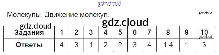 Ответ на задание Молекулы. Движение молекул Тесты Физика за 7 (седьмой) класс Чеботарева УМК 2017 ФГОС онлайн и без номера телефона.
