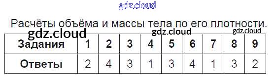 Ответ на задание Расчёты объёма и массы тела по его плотности Тесты Физика за 7 (седьмой) класс Чеботарева УМК 2017