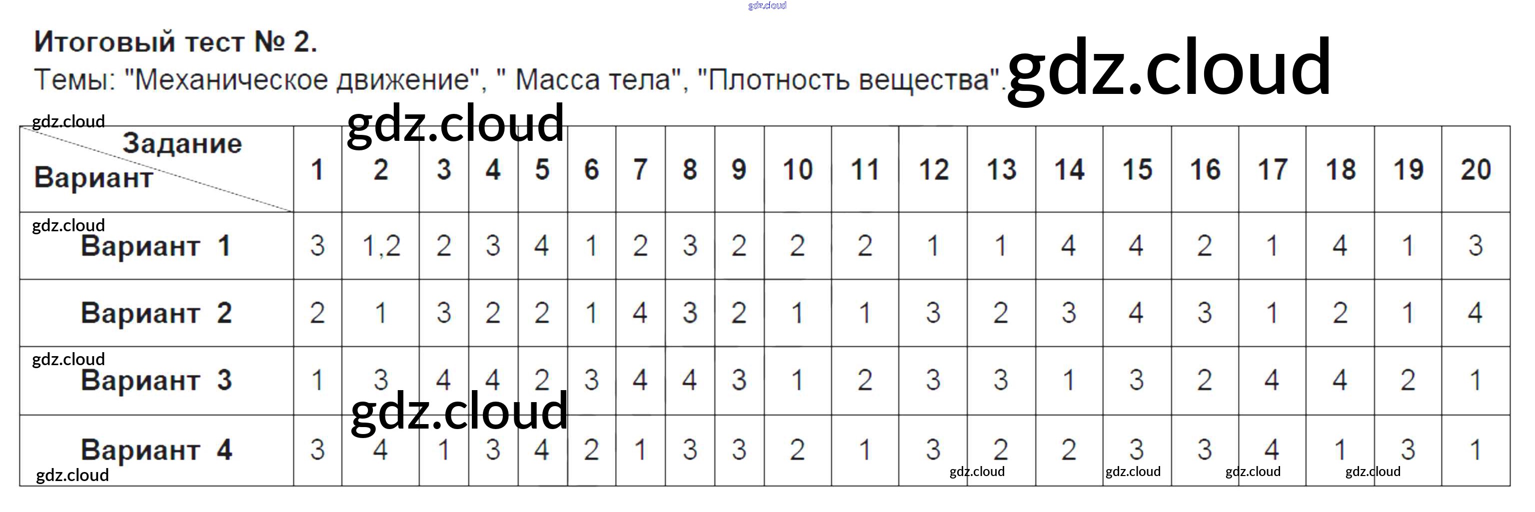 Ответ на задание Итоговый тест №2 Тесты Физика за 7 (седьмой) класс Чеботарева УМК 2017