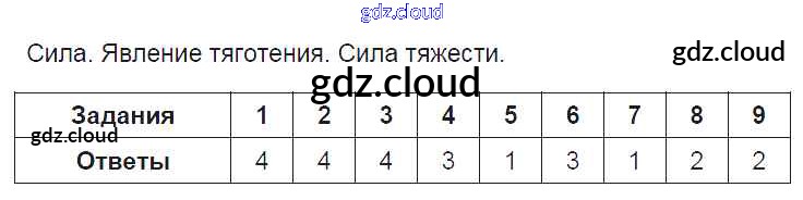 Ответ на задание Сила. Явление тяготения. Сила тяжести Тесты Физика за 7 (седьмой) класс Чеботарева УМК 2017