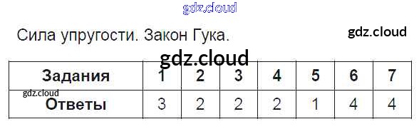 Ответ на задание Сила упругости. Закон Гука Тесты Физика за 7 (седьмой) класс Чеботарева УМК 2017