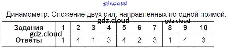Ответ на задание Динамометр. Сложение двух сил, направленных по одной прямой Тесты Физика за 7 (седьмой) класс Чеботарева УМК 2017