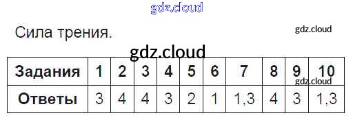 Ответ на задание Сила трения Тесты Физика за 7 (седьмой) класс Чеботарева УМК 2017