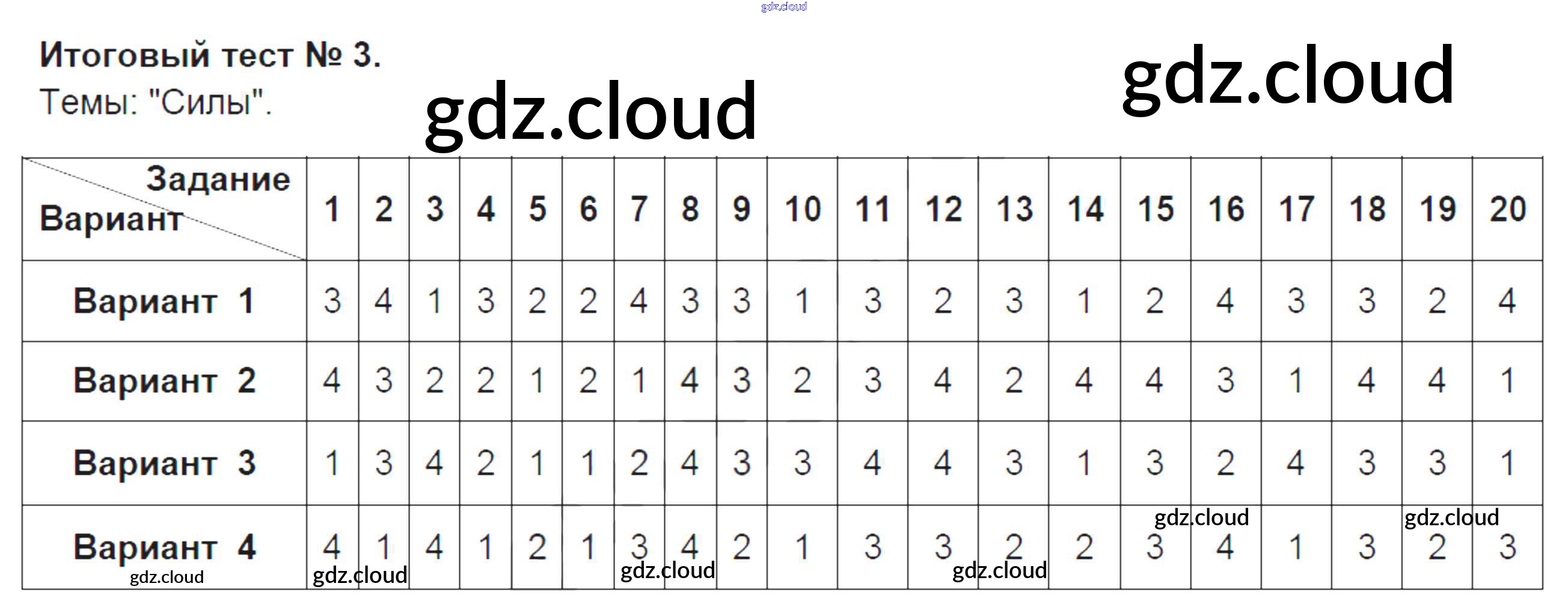 Ответ на задание Итоговый тест №3 Тесты Физика за 7 (седьмой) класс Чеботарева УМК 2017