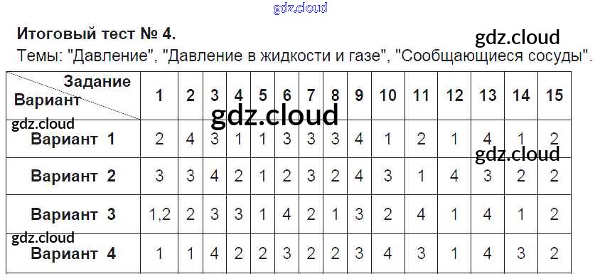 Ответ на задание Итоговый тест №4 Тесты Физика за 7 (седьмой) класс Чеботарева УМК 2017