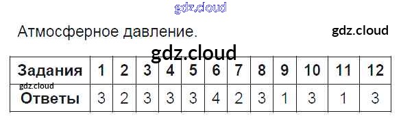 Ответ на задание Атмосферное давление Тесты Физика за 7 (седьмой) класс Чеботарева УМК 2017