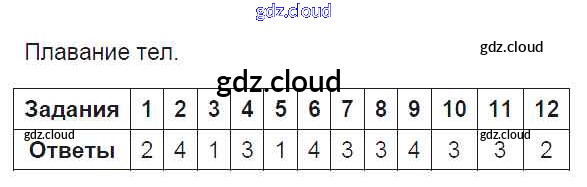 Ответ на задание Плавание тел Тесты Физика за 7 (седьмой) класс Чеботарева УМК 2017