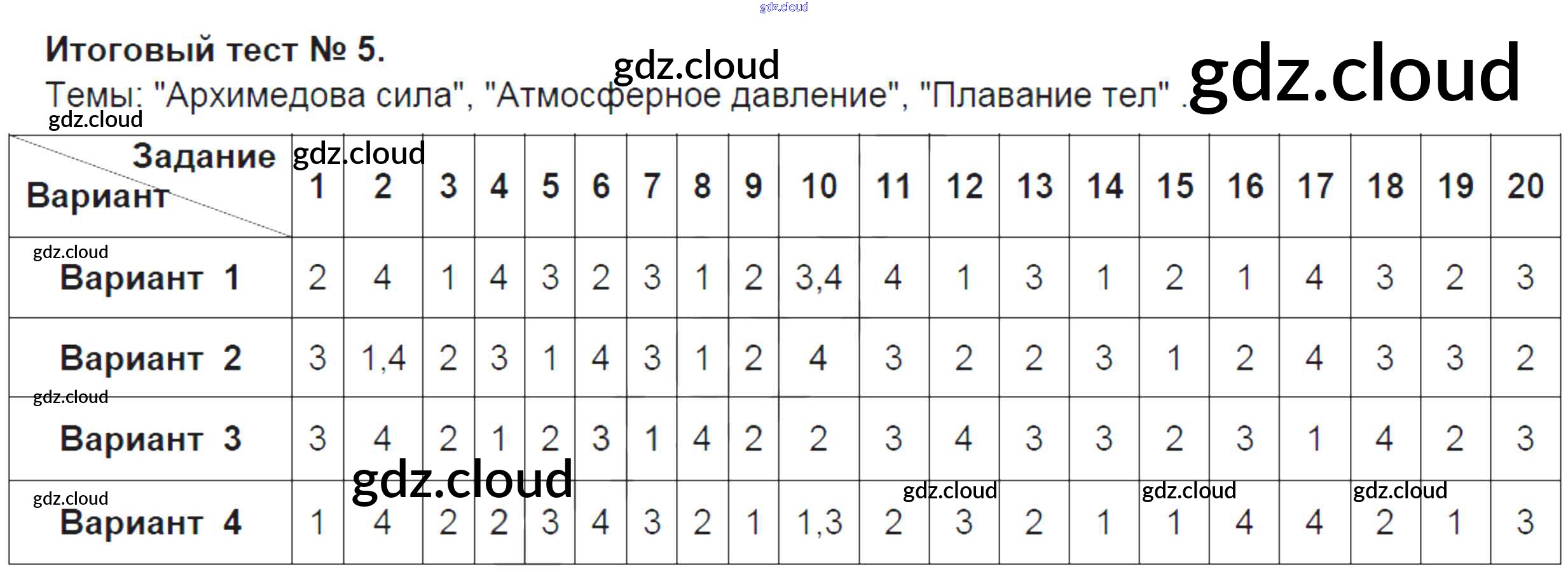 Ответ на задание Итоговый тест №5 Тесты Физика за 7 (седьмой) класс Чеботарева УМК 2017