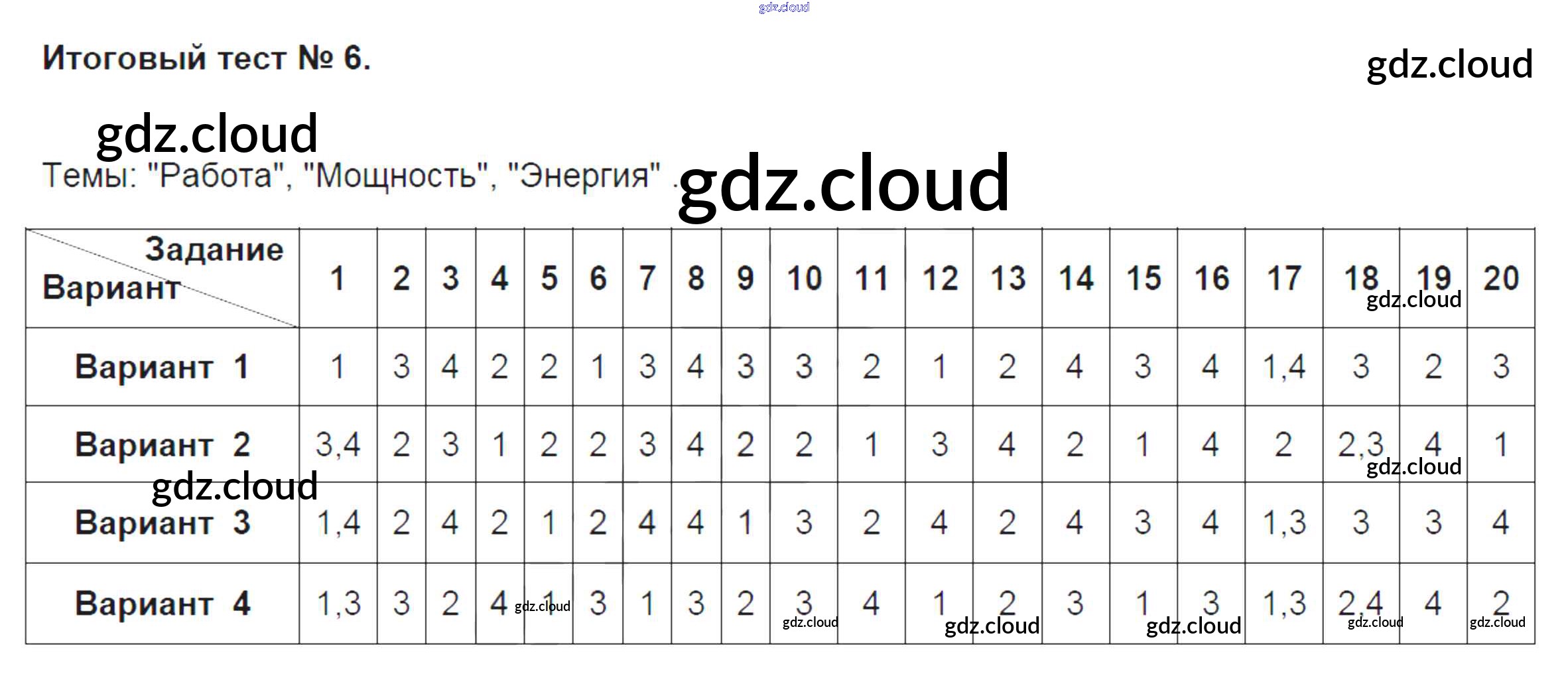 Ответы к главе 4. Работа и мощность по Физике 7 класс Тесты Чеботарева УМК Экзамен