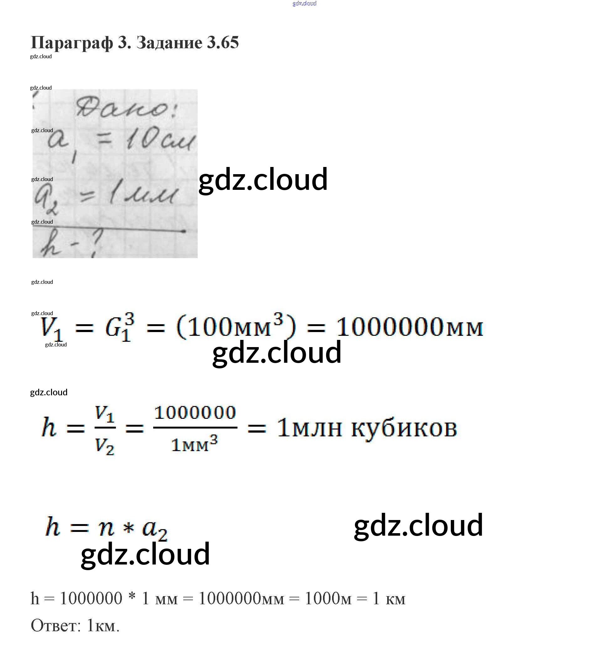 Ответ на задание 65 Задачник Физика за 7 (седьмой) класс Генденштейн, Кирик, Гельфгат 2015 ФГОС онлайн и без номера телефона.