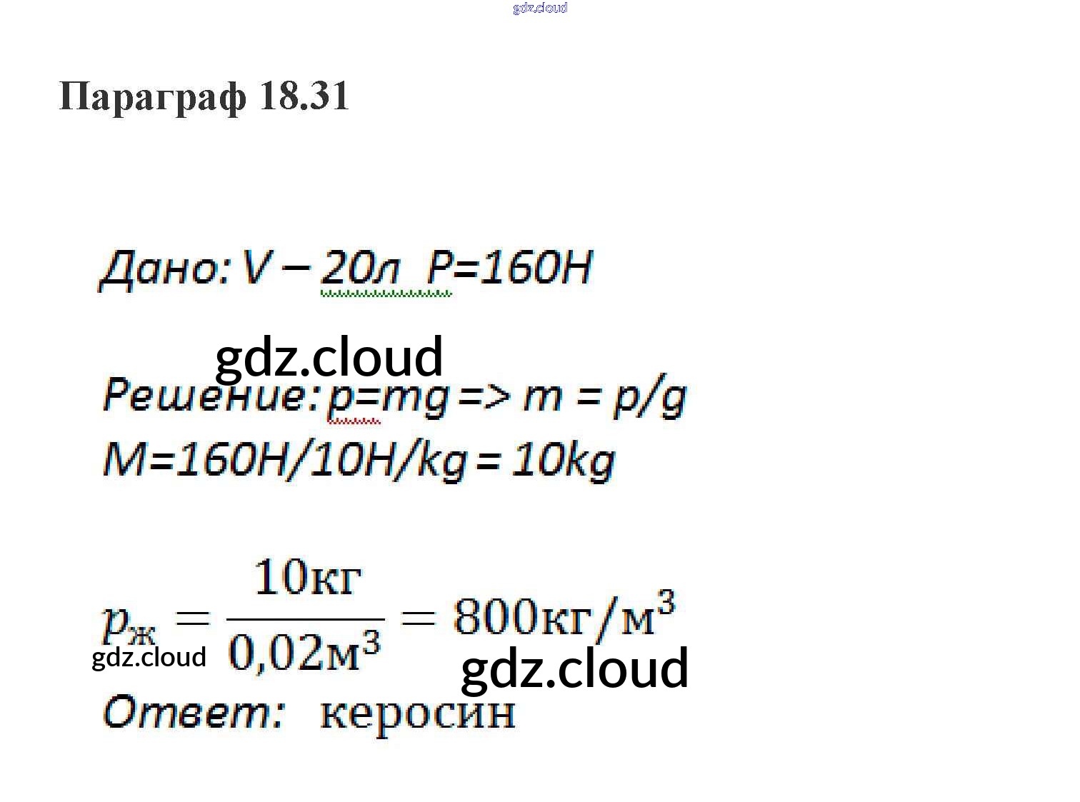 Ответ на задание 31 Задачник Физика за 7 (седьмой) класс Генденштейн, Кирик, Гельфгат 2015 ФГОС онлайн и без номера телефона.