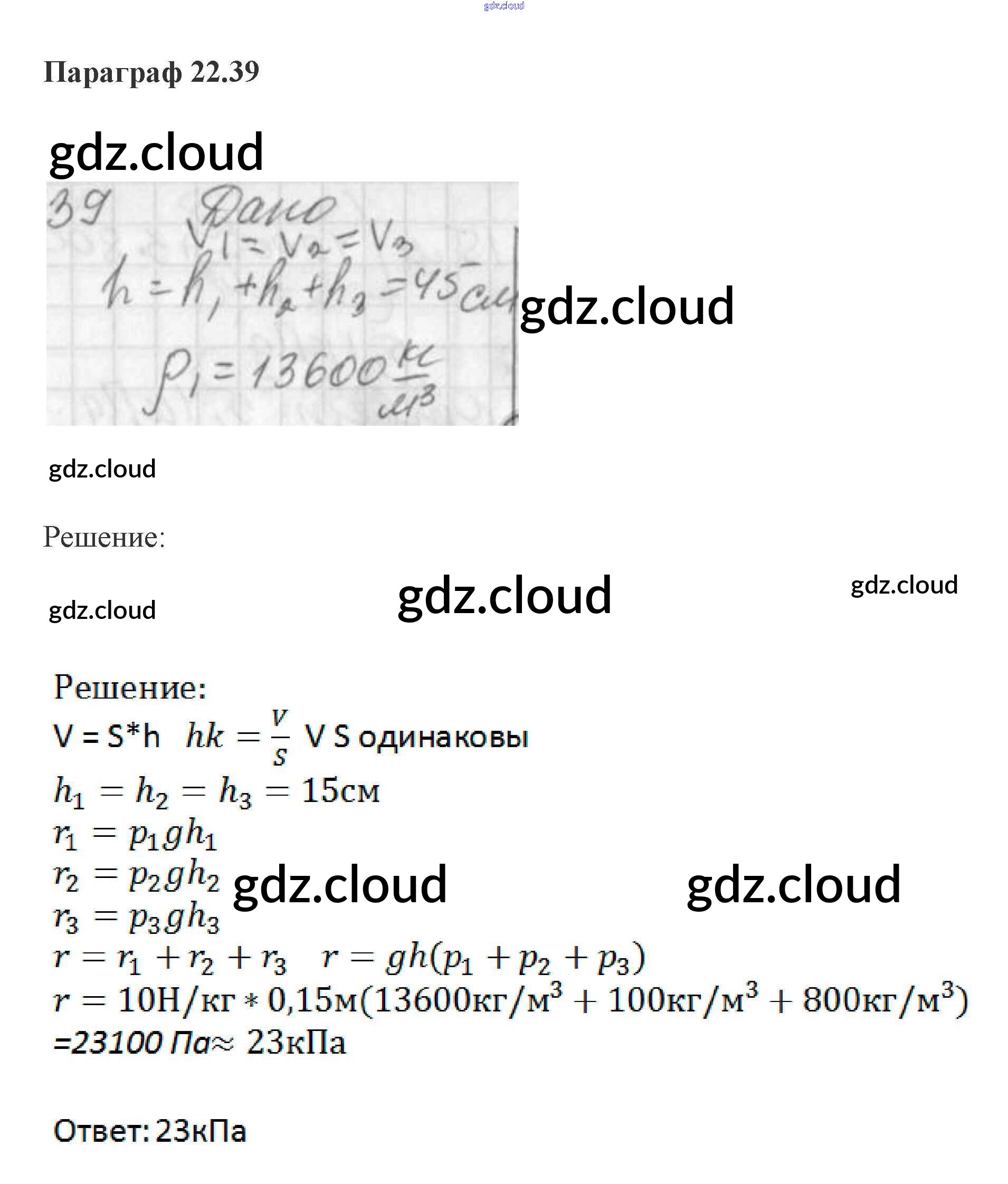 Ответ на задание 39 Задачник Физика за 7 (седьмой) класс Генденштейн, Кирик, Гельфгат 2015 ФГОС онлайн и без номера телефона.