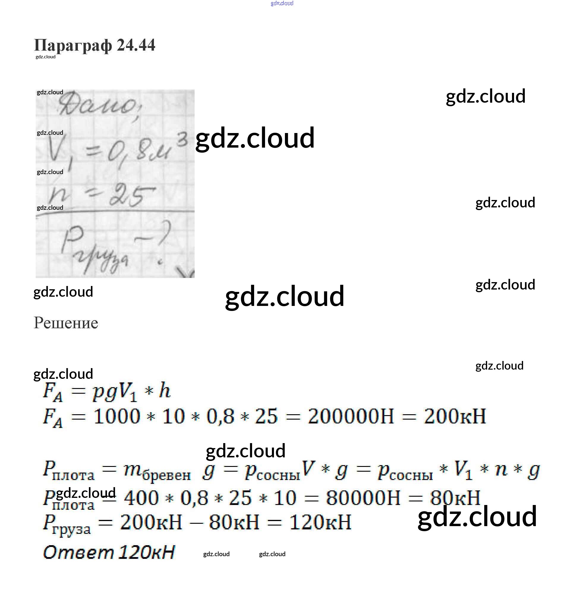 Ответ на задание 44 Задачник Физика за 7 (седьмой) класс Генденштейн, Кирик, Гельфгат 2015 ФГОС онлайн и без номера телефона.