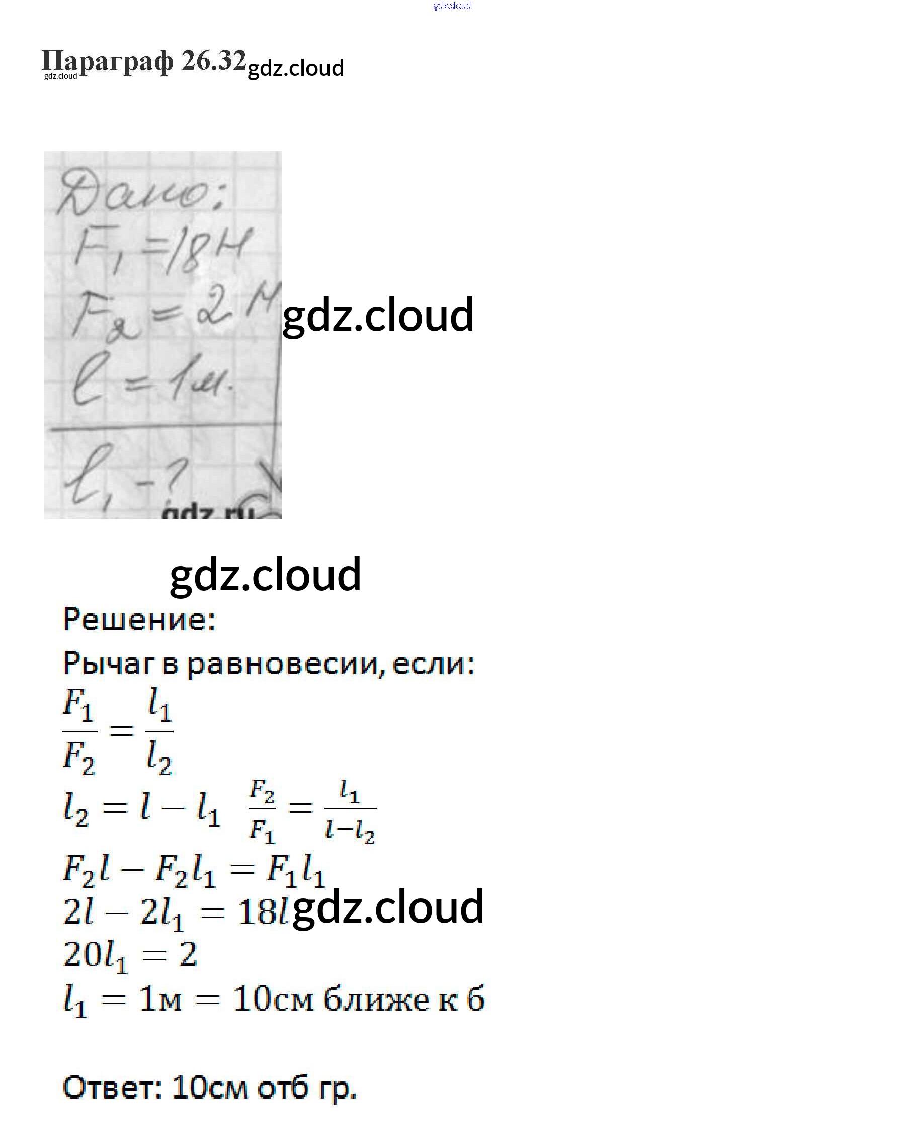 Ответ на задание 32 Задачник Физика за 7 (седьмой) класс Генденштейн, Кирик, Гельфгат 2015 ФГОС онлайн и без номера телефона.