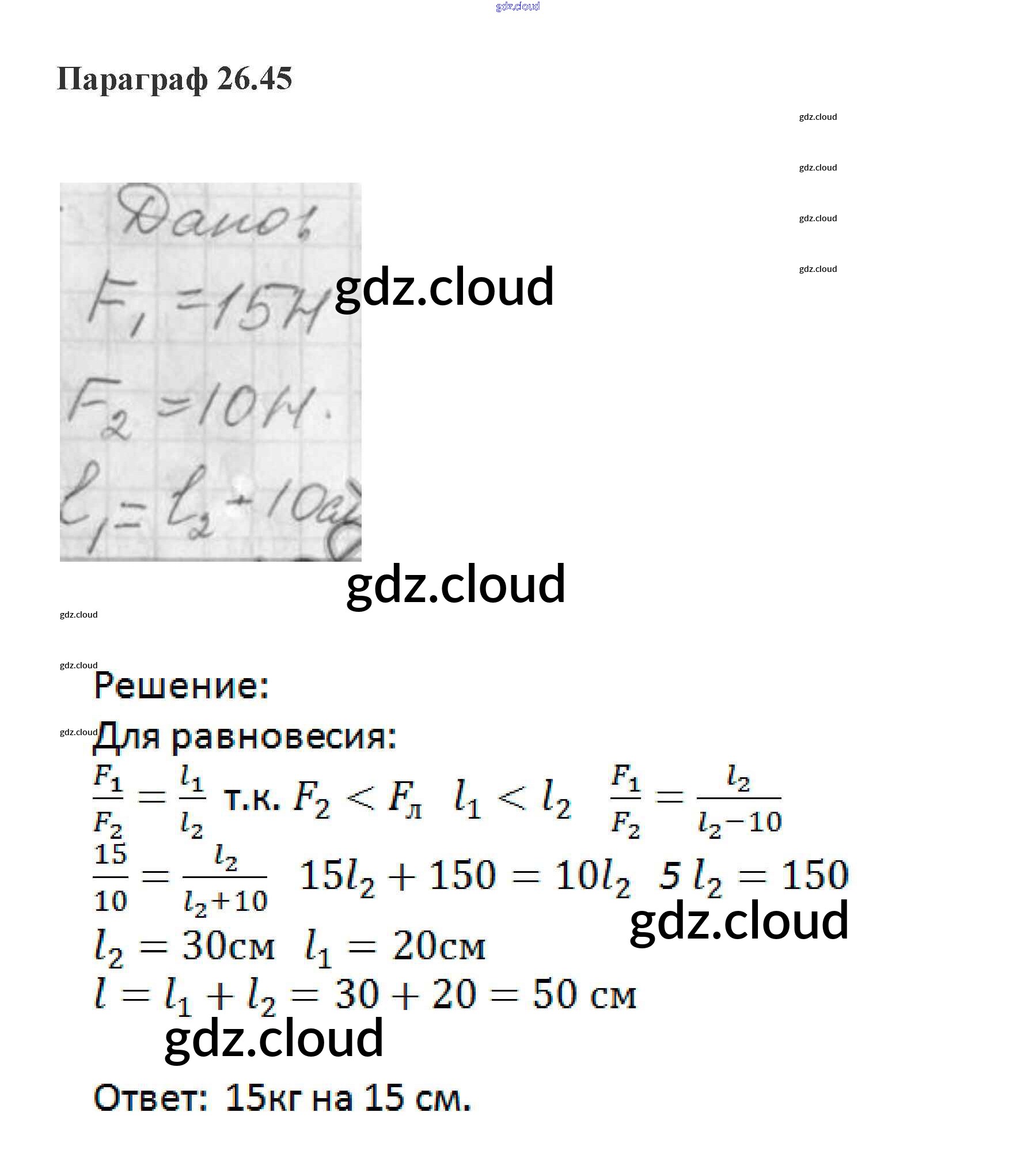 Ответ на задание 45 Задачник Физика за 7 (седьмой) класс Генденштейн, Кирик, Гельфгат 2015 ФГОС онлайн и без номера телефона.
