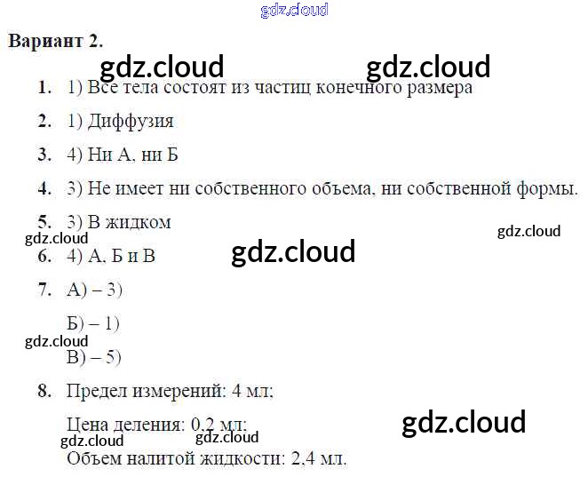 Глава 1. Первоначальные сведения о строении вещества Ответы к контрольным работам по Физике 7 класс Контрольные и самостоятельные работы Громцева УМК Экзамен