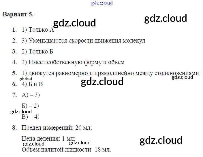 Глава 1. Первоначальные сведения о строении вещества Ответы к контрольным работам по Физике 7 класс Контрольные и самостоятельные работы Громцева УМК Экзамен