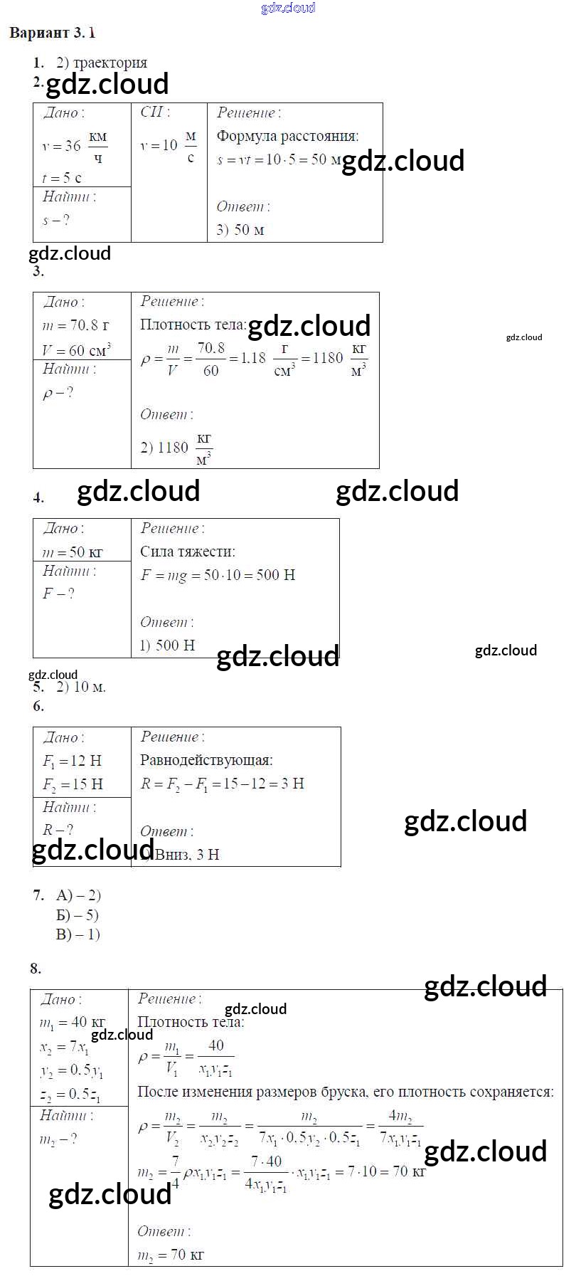 Ответ на задание Вар. 3 Контрольные и самостоятельные работы Физика за 7 (седьмой) класс Громцева УМК 2020