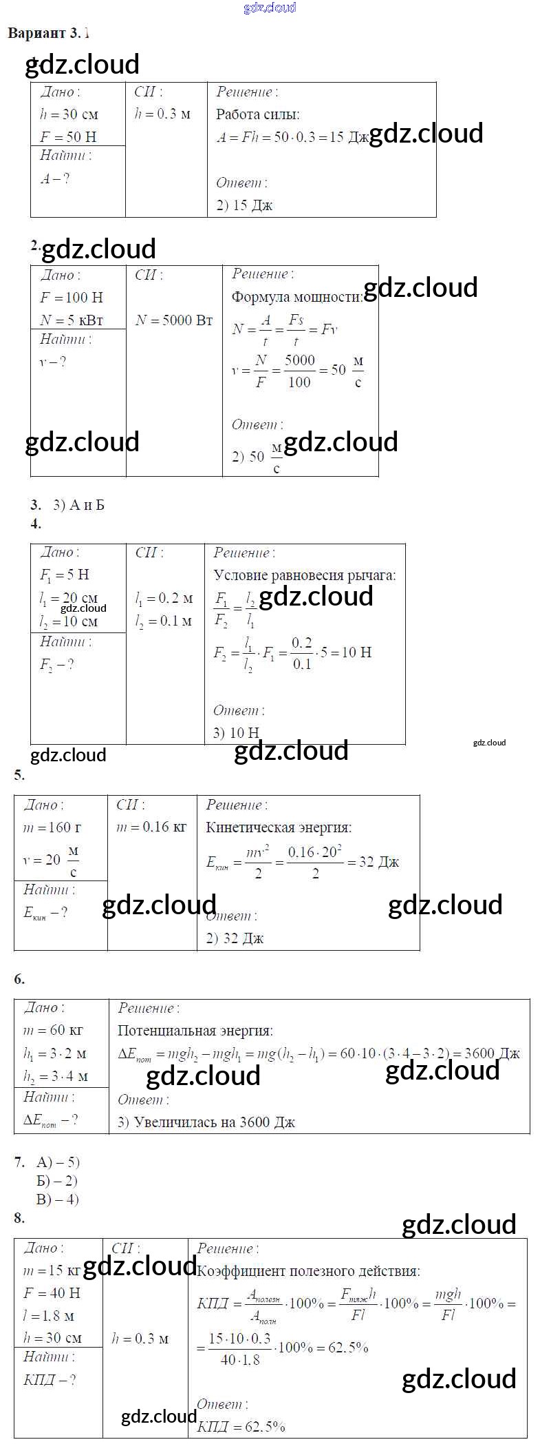 контрольная работа / глава 4. работа и мощность. Энергия / вар. 3