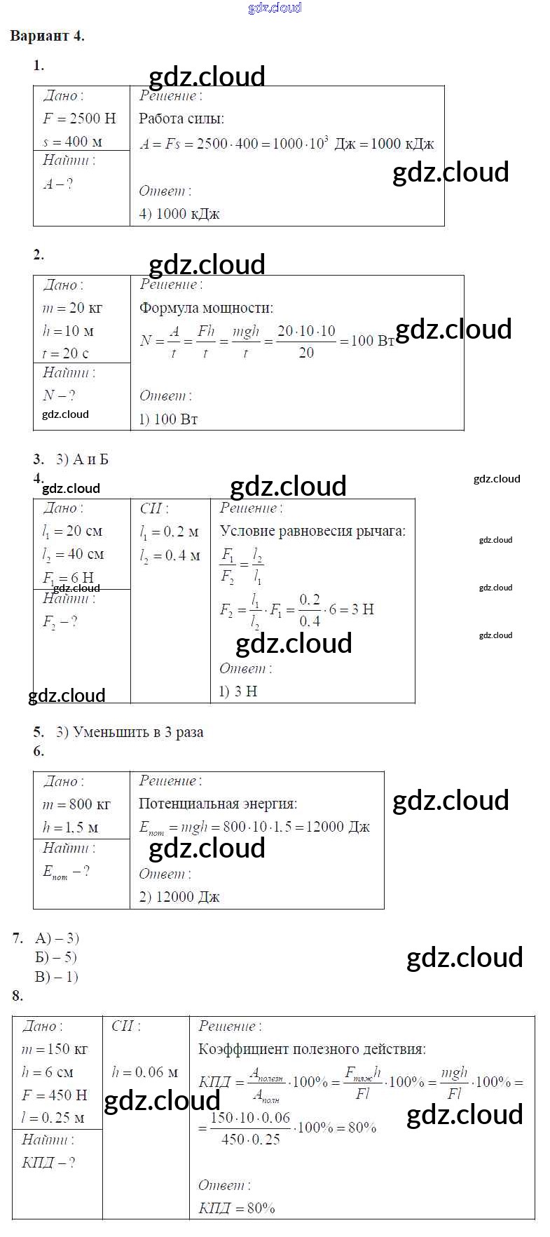 контрольная работа / глава 4. работа и мощность. Энергия / вар. 4
