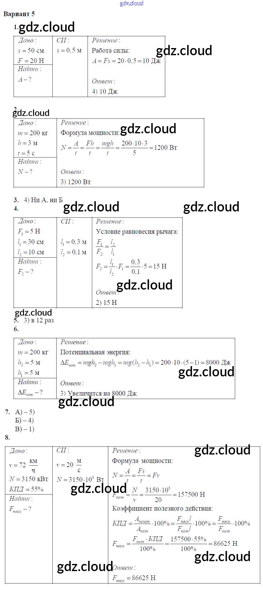 контрольная работа / глава 4. работа и мощность. Энергия / вар. 5