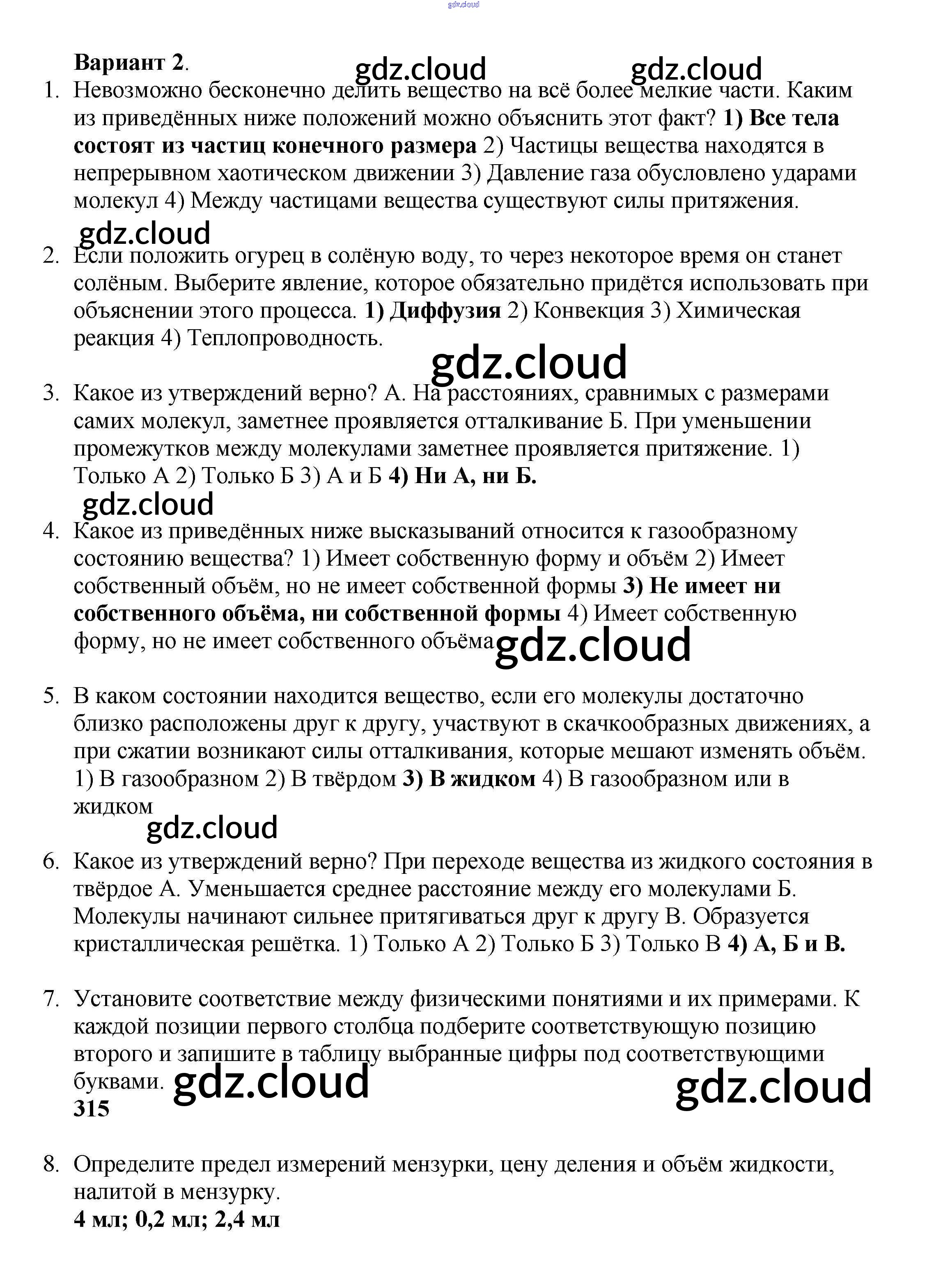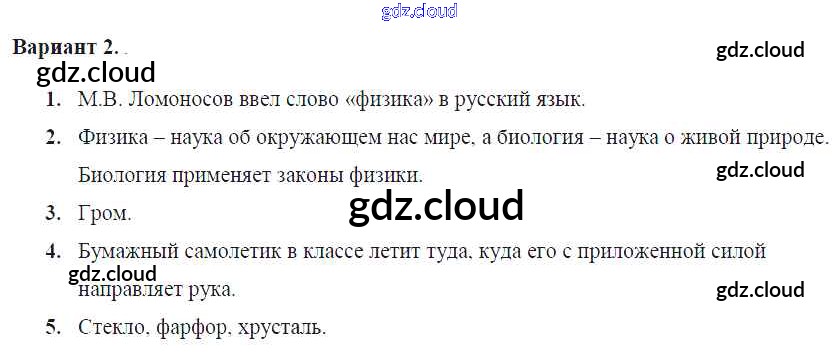 Ответ на задание Вар. 2 Контрольные и самостоятельные работы Физика за 7 (седьмой) класс Громцева УМК 2020