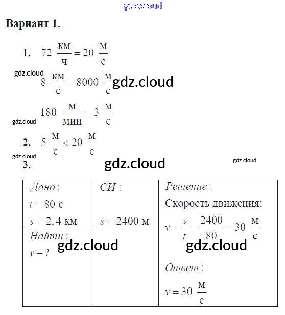 Ответ на задание Вар. 1 Контрольные и самостоятельные работы Физика за 7 (седьмой) класс Громцева УМК 2020