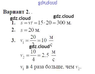 Ответ на задание Вар. 2 Контрольные и самостоятельные работы Физика за 7 (седьмой) класс Громцева УМК 2020