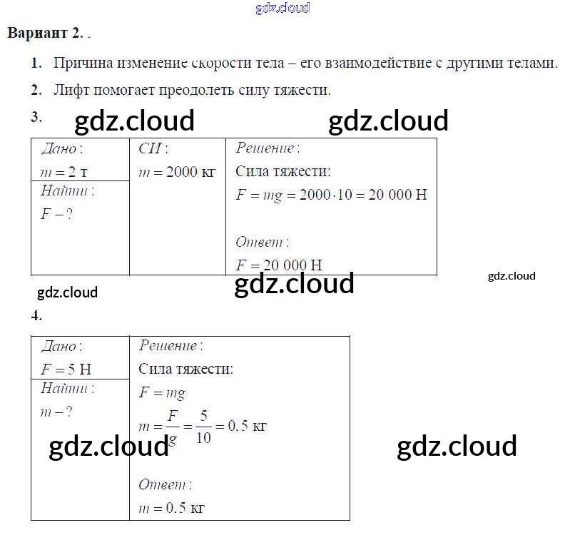 Ответ на задание Вар. 2 Контрольные и самостоятельные работы Физика за 7 (седьмой) класс Громцева УМК 2020