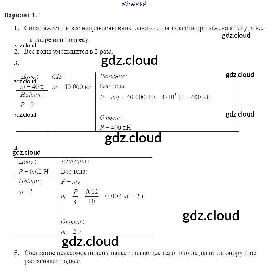 самостоятельная работа / ср №19. вес тела / вар. 1