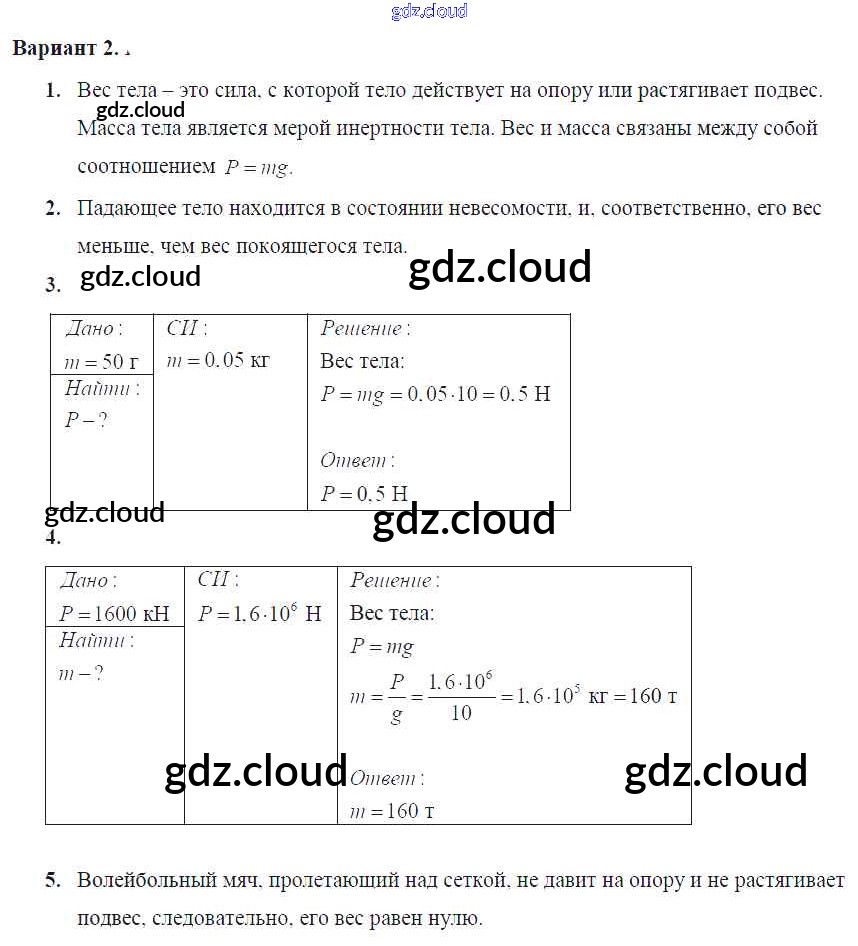 самостоятельная работа / ср №19. вес тела / вар. 2