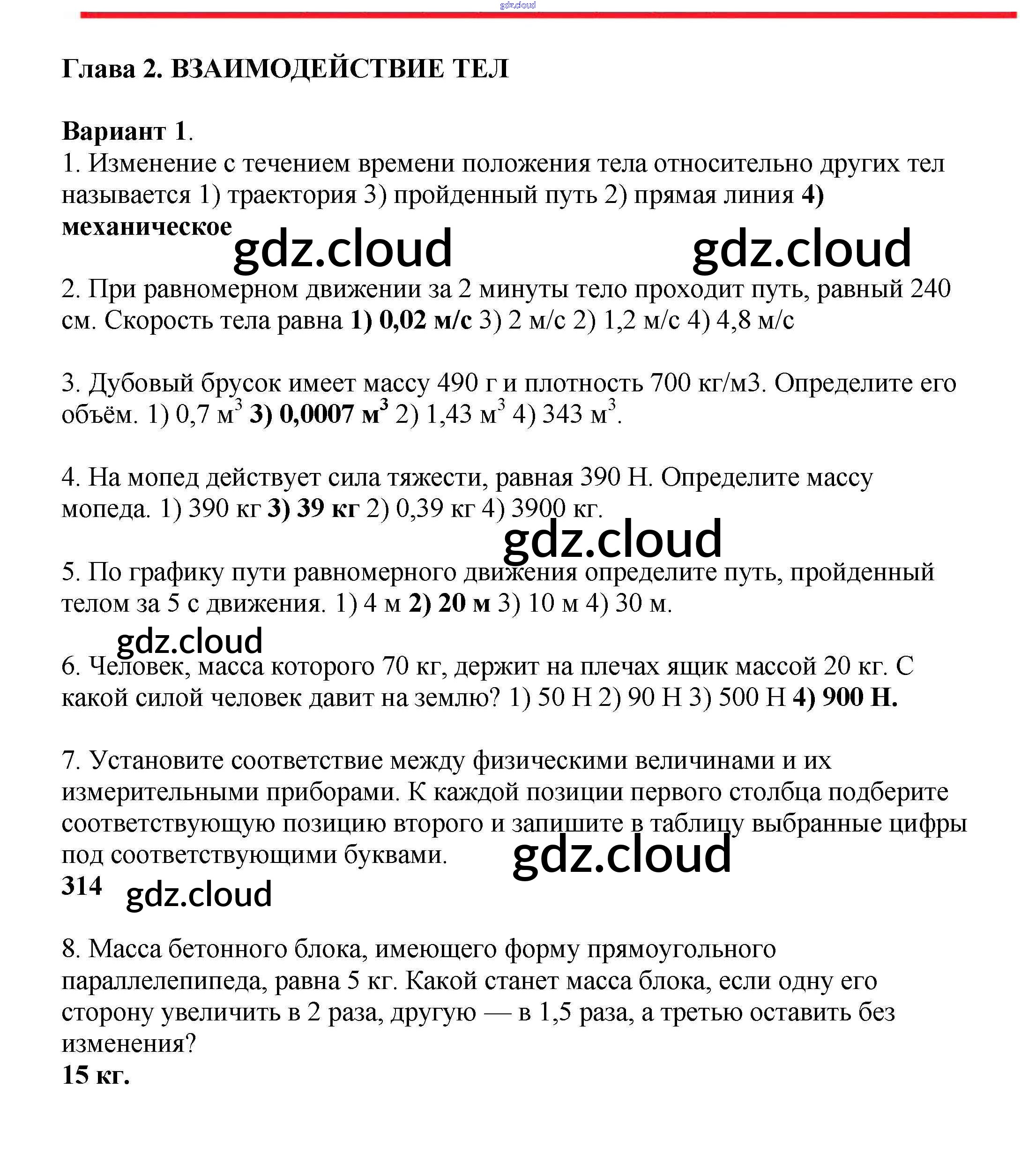 Ответ на задание Вар. 1 Контрольные и самостоятельные работы Физика за 7 (седьмой) класс Громцева УМК 2020