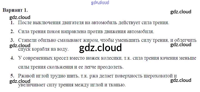 Ответ на задание Вар. 1 Контрольные и самостоятельные работы Физика за 7 (седьмой) класс Громцева УМК 2020