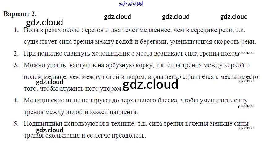 Ответ на задание Вар. 2 Контрольные и самостоятельные работы Физика за 7 (седьмой) класс Громцева УМК 2020
