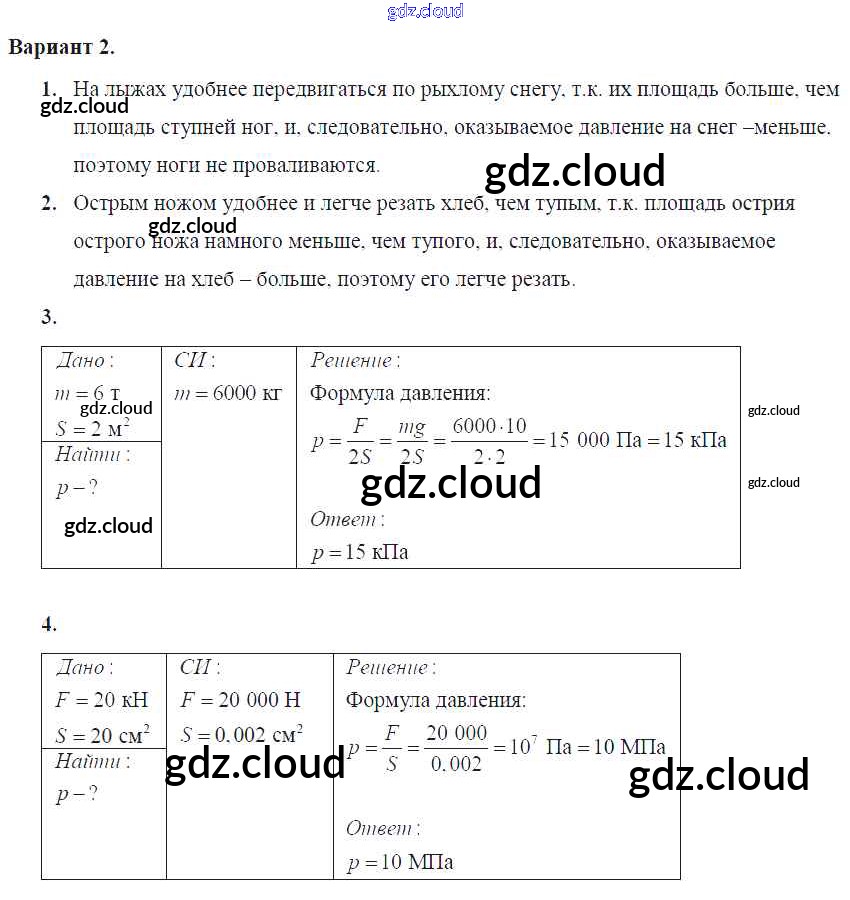 самостоятельная работа / ср №24. давление. единицы давления / вар. 2