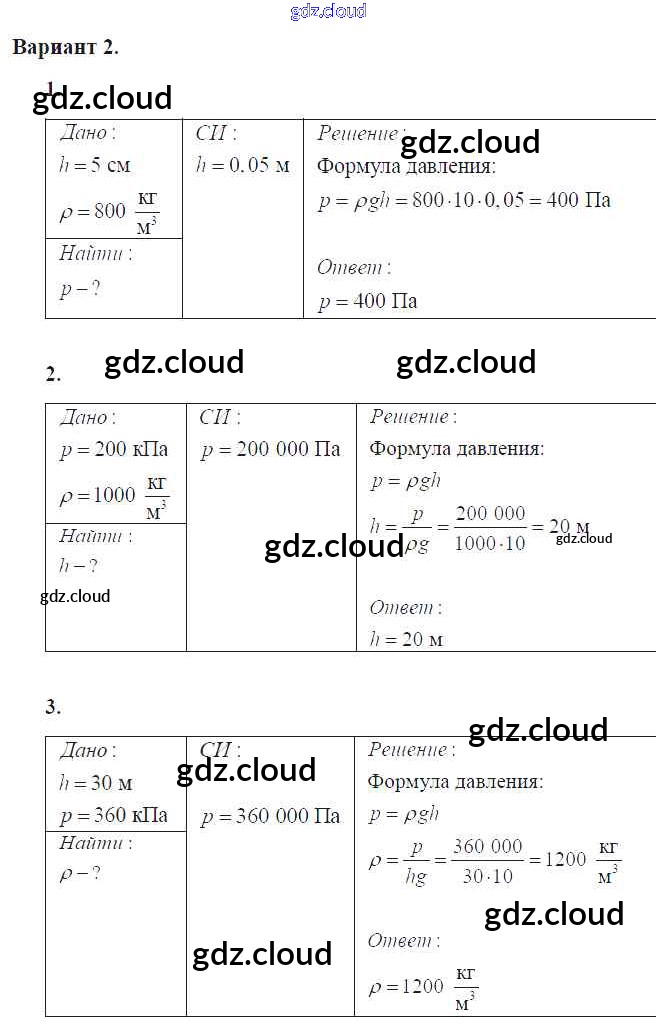 самостоятельная работа / ср №29. расчет давления жидкости на дно и стенки сосуда / вар. 2