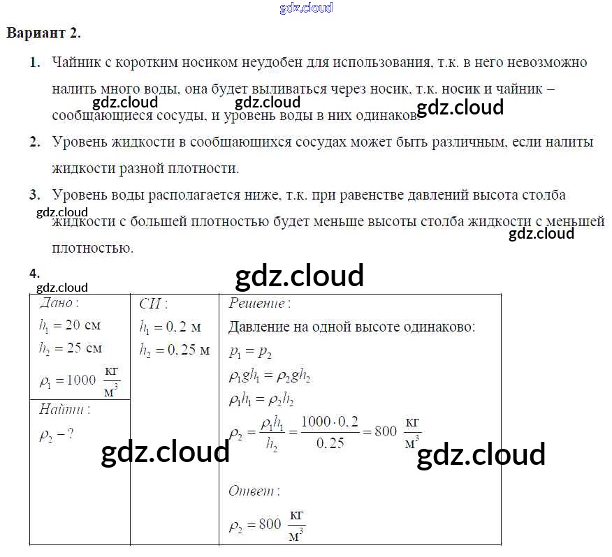 самостоятельная работа / ср №30. сообщающиеся сосуды / вар. 2