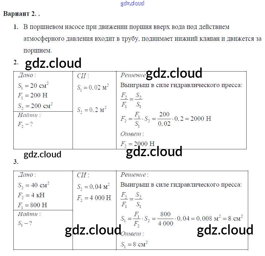 СР №34. Поршневой жидкостный насос. Гидравлический пресс Ответы к самостоятельным работам по Физике 7 класс Контрольные и самостоятельные работы Громцева УМК Экзамен