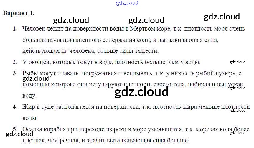 СР №38. Плавание тел Ответы к самостоятельным работам по Физике 7 класс Контрольные и самостоятельные работы Громцева УМК Экзамен