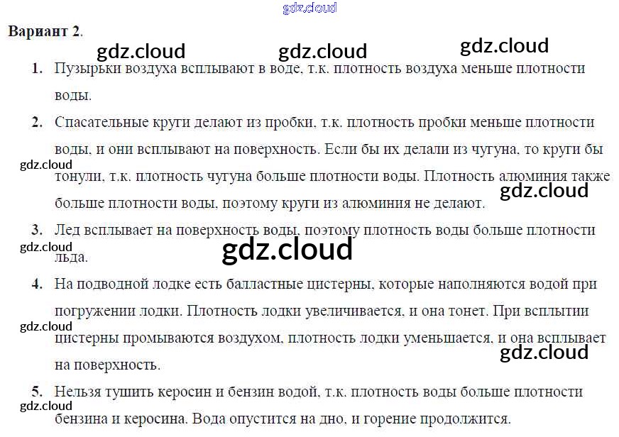 Ответ на задание Вар. 2 Контрольные и самостоятельные работы Физика за 7 (седьмой) класс Громцева УМК 2020
