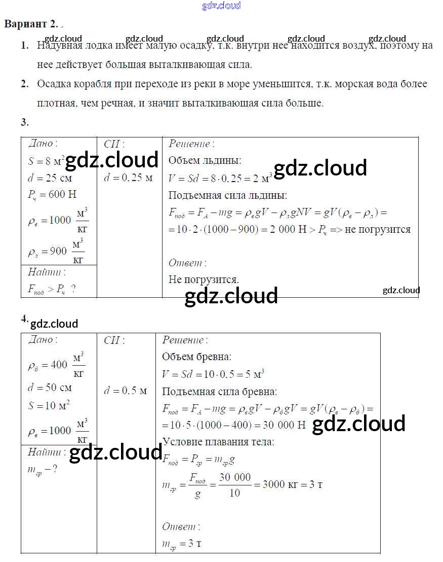 СР №39. Плавание судов Ответы к самостоятельным работам по Физике 7 класс Контрольные и самостоятельные работы Громцева УМК Экзамен