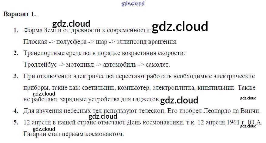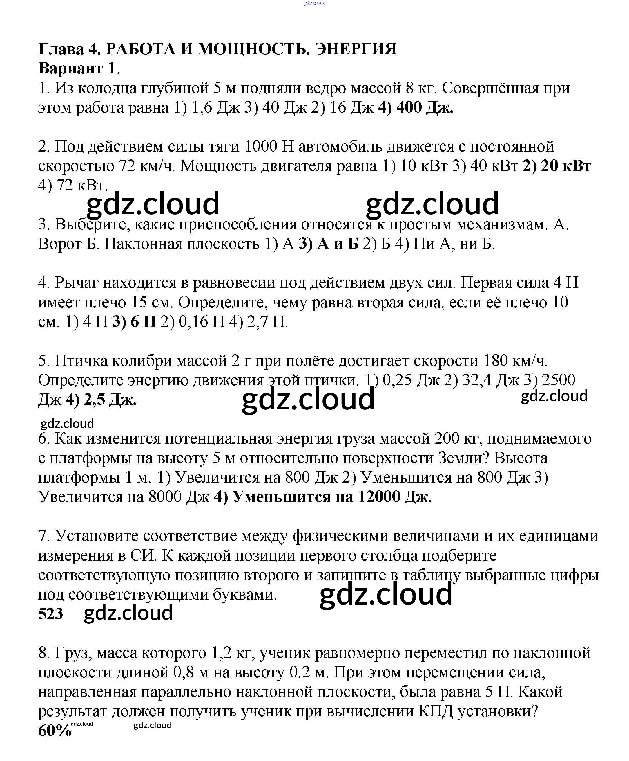 Ответ на задание Вар. 1 Контрольные и самостоятельные работы Физика за 7 (седьмой) класс Громцева УМК 2020