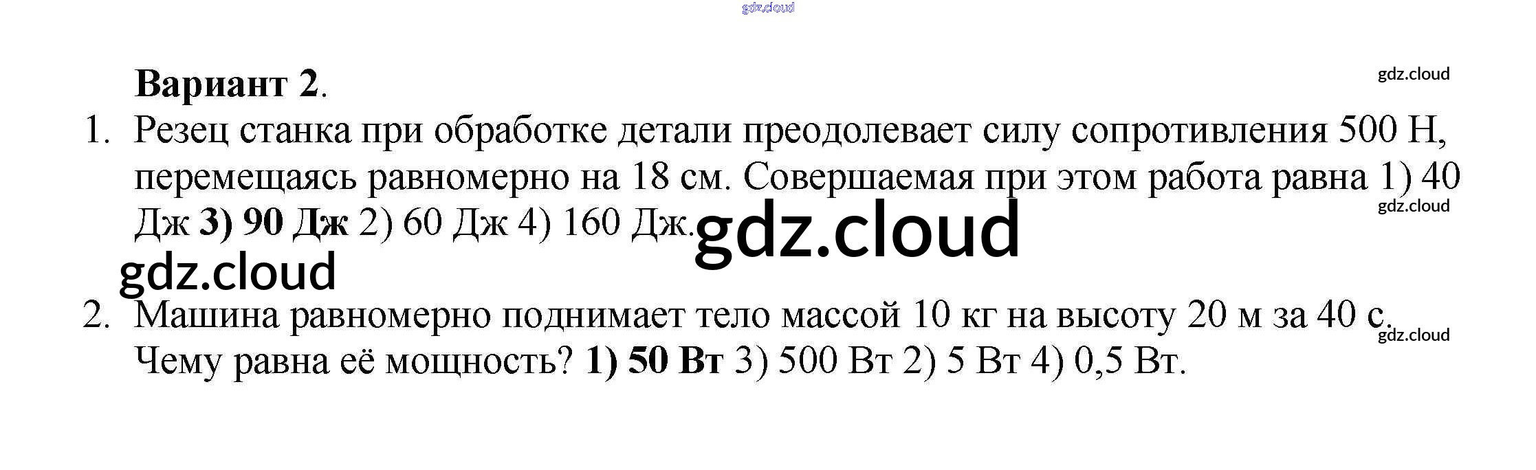 Ответ на задание Вар. 2 Контрольные и самостоятельные работы Физика за 7 (седьмой) класс Громцева УМК 2020
