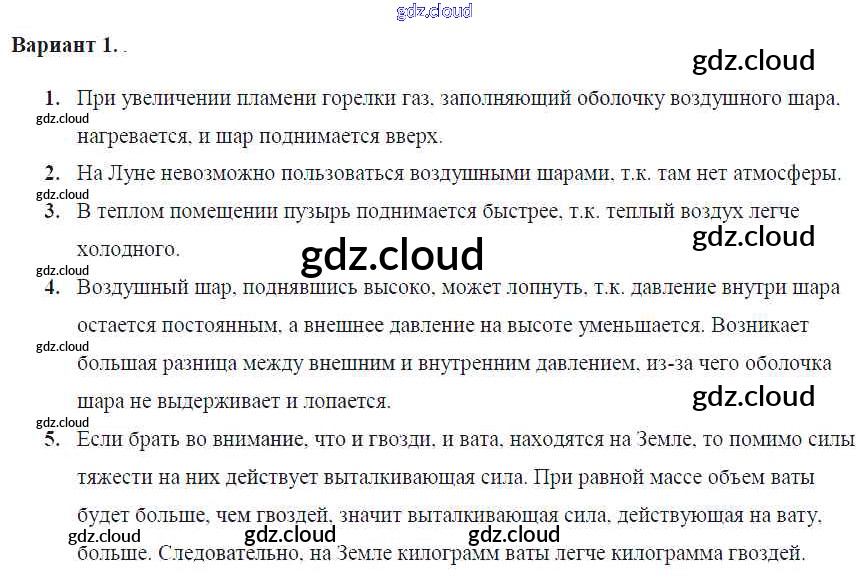 СР №40. Воздухоплавание Ответы к самостоятельным работам по Физике 7 класс Контрольные и самостоятельные работы Громцева УМК Экзамен