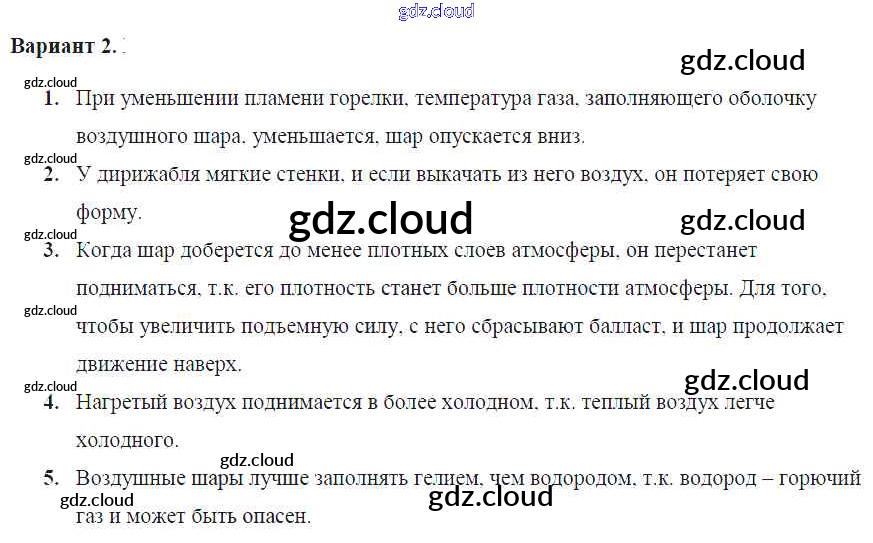 СР №40. Воздухоплавание Ответы к самостоятельным работам по Физике 7 класс Контрольные и самостоятельные работы Громцева УМК Экзамен