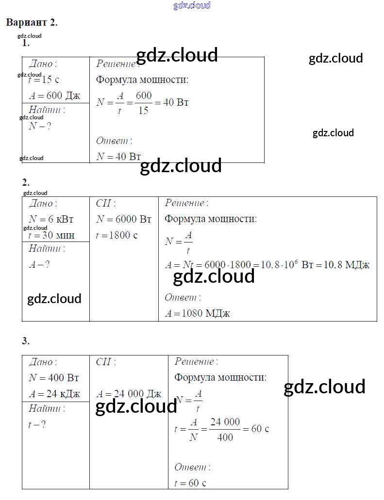 самостоятельная работа / ср №42. мощность. единицы мощности / вар. 2