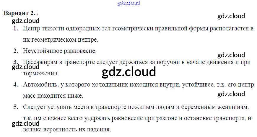 Ответ на задание Вар. 2 Контрольные и самостоятельные работы Физика за 7 (седьмой) класс Громцева УМК 2020
