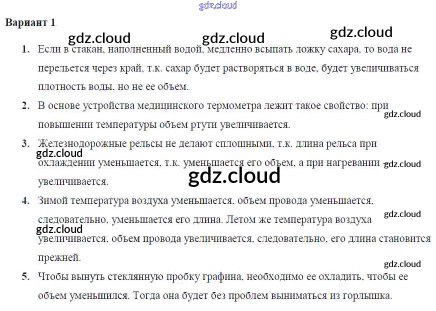Ответ на задание Вар. 1 Контрольные и самостоятельные работы Физика за 7 (седьмой) класс Громцева УМК 2020